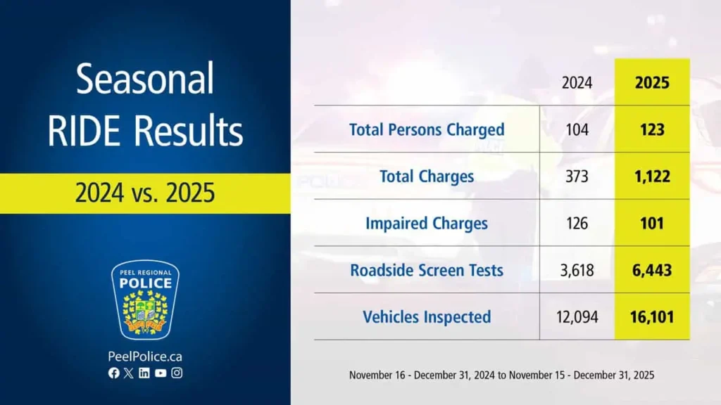 Peel Regional Police has officially concluded the 2025 Seasonal Reduce Impaired Driving Everywhere (RIDE) Campaign, delivering clear results and reinforcing the region’s zero-tolerance approach to impaired driving.