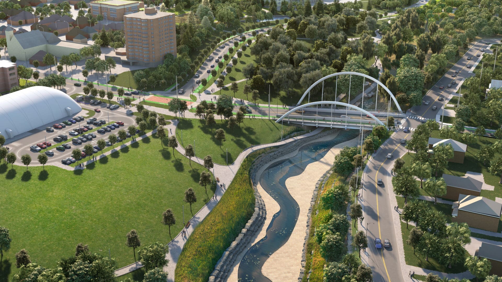 Conceptual rendering of Riverwalk’s Downtown Brampton Flood Protection Project (subject to refinement). Credit: City of Brampton