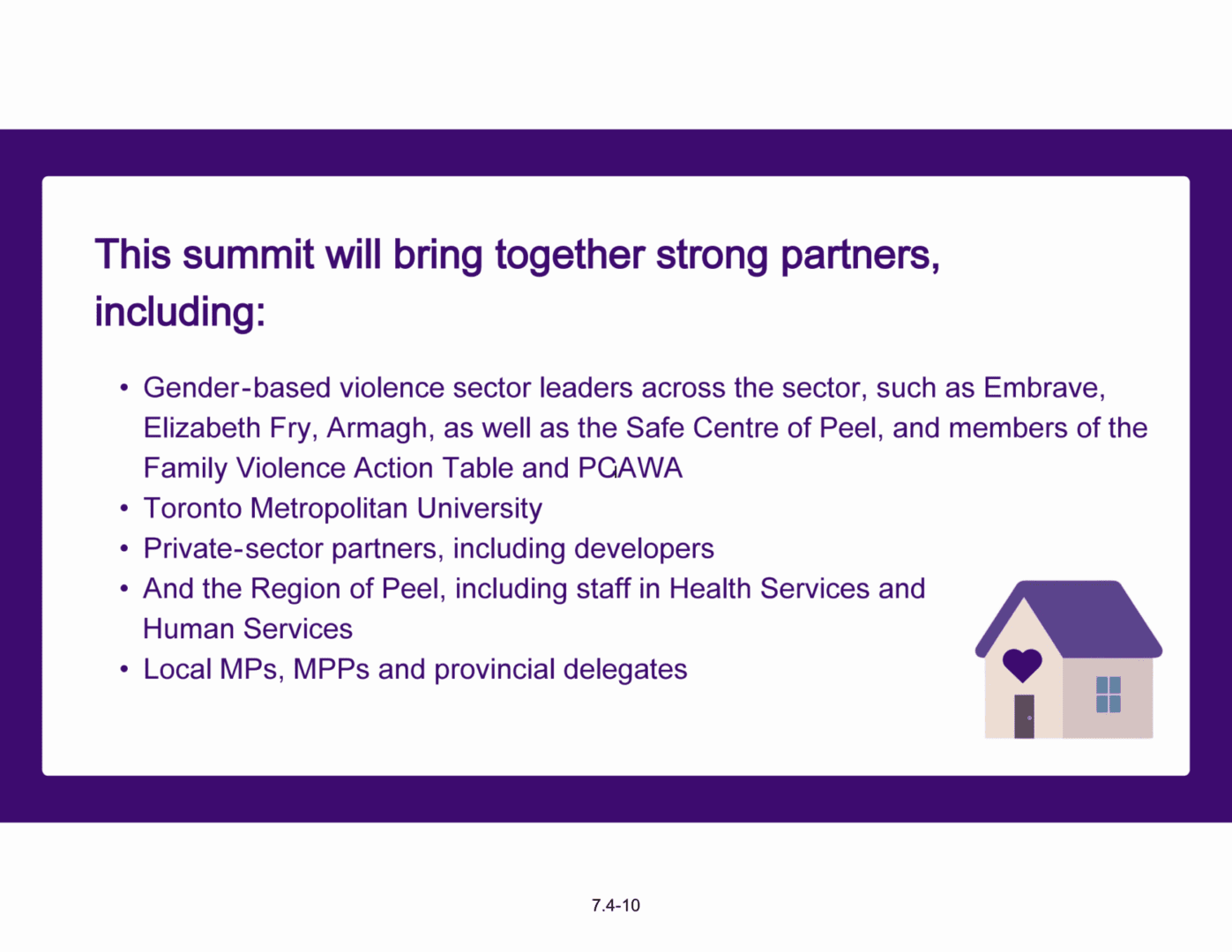 “The highest number of mobile dispatched calls to Peel Police is intimate partner violence related. In 2024, Peel police responded to almost 2 IPV disputes every hour. This is a safety crisis and housing continues to be one of the biggest obstacles to address it,” said Councillor Santos. “Survivors cannot leave abuse if they have nowhere safe to go. This Summit is about moving beyond awareness to delivering concrete, coordinated housing solutions that break the cycle of violence. Our vision is to understand and identify the continuum of care for women and their children to be supported out of abuse, and identify the gaps in housing support within the system.”