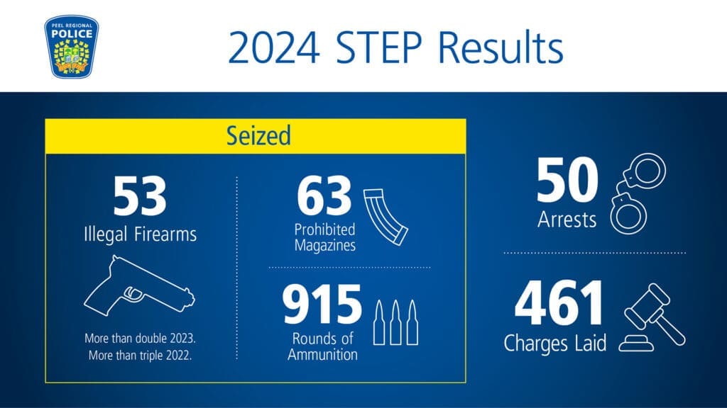 Peel Regional Police seized more than double the illegal firearms this year compared to 2023 thanks to their STEP program. This program focuses on removing guns from streets and reducing gang violence. In total, Peel police seized 205 illegal guns in 2024, with STEP seizing 53 of them. The government is committed to supporting such initiatives to enhance public safety.